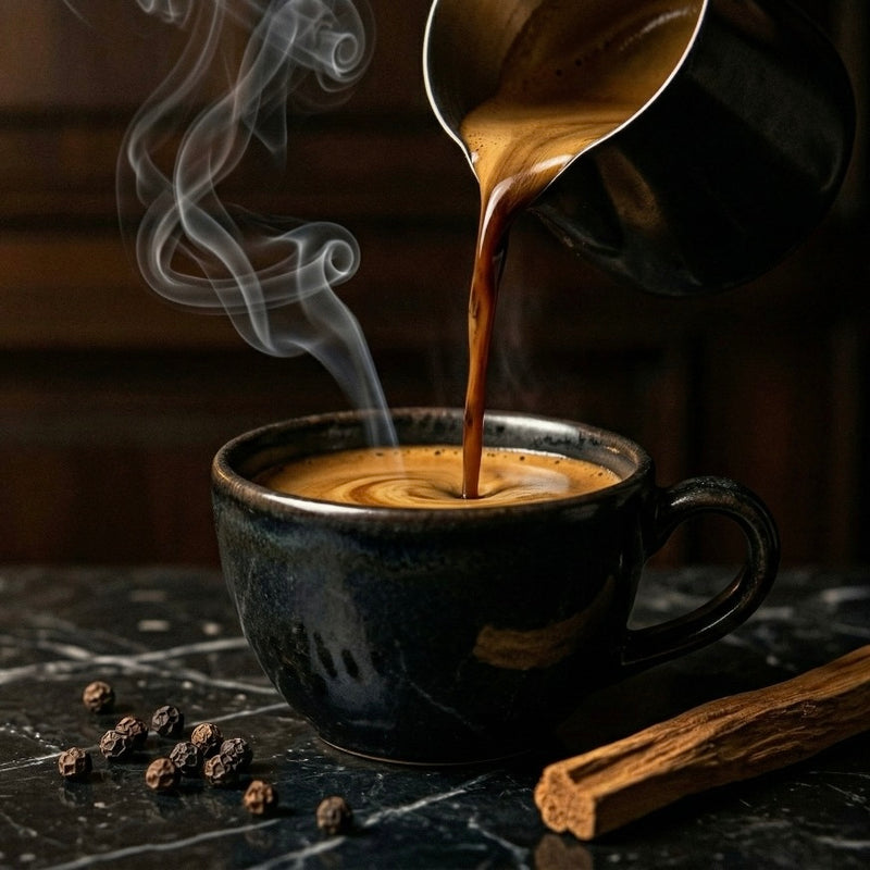 Cafe Rose is a sophisticated blend where dark, Turkish rose meets the sharp, exotic edge of black coffee. It opens with spicy floral notes and settles into a rich, resinous base of incense and amber. This is a bold, "midnight" rose - sensual, unisex, and far from a traditional floral.